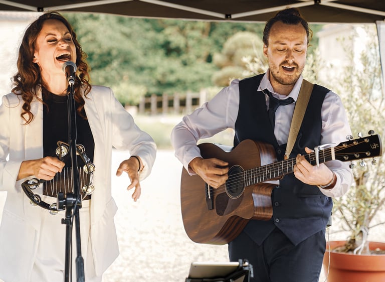 J'avais eu un coup de coeur en écoutant les reprises sur internet, et ce dernier s'est nettement confirmé le jour de notre mariage. Vous avez sublimé notre cocktail, nos invités ont tous été unanimes, vous avez été incroyables ! Mention spéciale pour les reprises personnalisées ! Un grand merci à vous deux !